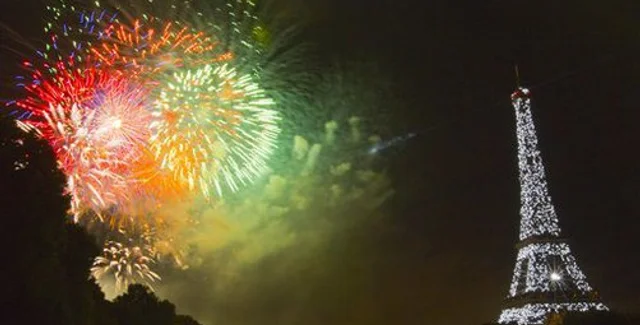 Финалом праздника становится большой салют и фейерверк у Эйфелевой башни и на Марсовых полях. Это пиротехническое представление начинается обычно в 10 часов вечера.