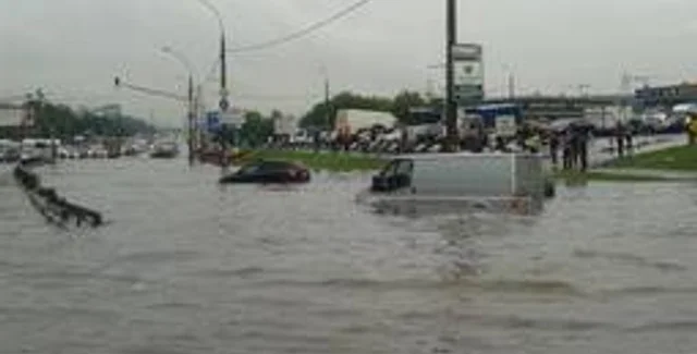 Сильнейший ливень превратил одно из шоссе в Москве в реку глубиной в метрИз-за перекрытого движения на шоссе также образовались многокилометровые пробки. По данным сервиса Яндекс.Пробки, там произошло несколько ДТП.