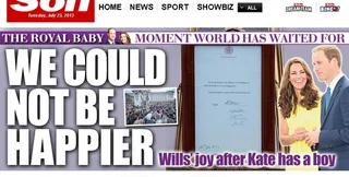 Таблоид The Sun принял решение об однократном переименовании в The Son (Сын - ред.). Обложка издания украшена изображением официального уведомления о рождении принца, которое было составлено и подписано королевскими врачами.