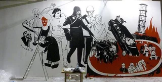 Он добавил, что его не пустили на выставку доделать работу. Кроме того, он узнал, что картину размером 11х5 метров закрасили черной краской.