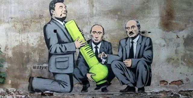 Украинский Бэнкси нарисовал Януковича, Путина и Лукашенко курящими травку