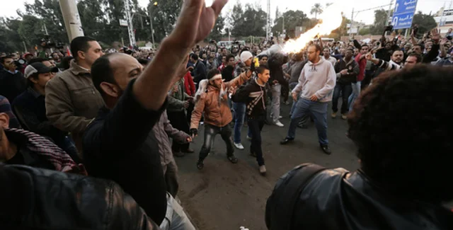 Вблизи мечети на площади собрались сторонники нынешних властей страны, потому полиции стоит больших усилий вывести арестованных с площади. Люди на площади озлоблены и готовы устроить самосуд исламистам.