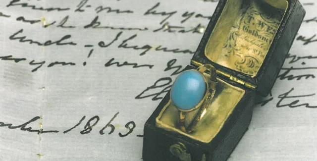 Кольцо с бирюзой - одно из трех ювелирных украшений Остин, дошедших до сегодняшнего дня. Считается, что оно было подарено Остин ее братом Генри или ирландцем Томом Лефроем, который в 1796 году за ней ухаживал. После смерти писательницы кольцо перешло ее старшей сестре Кассандре.