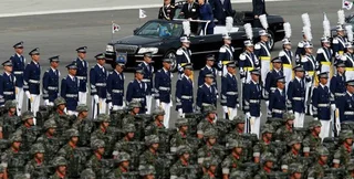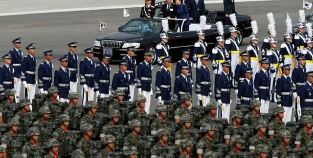 65-ю годовщину Дня вооруженных сил в Южной Корее отметили крупнейшим военным парадом за последние десять лет. В параде приняли участие 11 тысяч военнослужащих, а также были продемонстрированы новейшие ракеты дальнего действия, 190 видов наземной техники и 120 самолетов, сообщает агентство Ренхап.