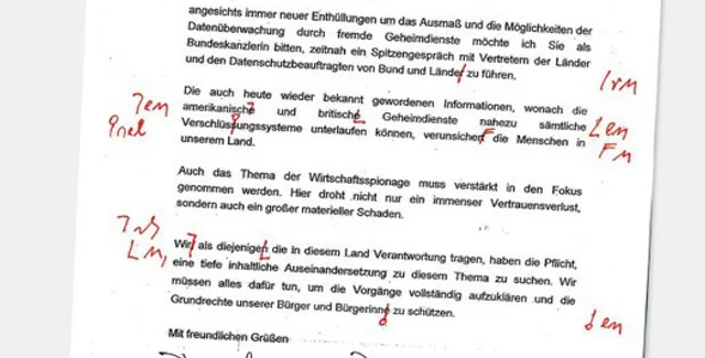 Между тем, в послании речь идет о весьма серьезной теме: слежке за гражданами ФРГ со стороны американских и британских спецслужб, о которой стало известно после скандальных разоблачений экс-сотрудника ЦРУ Эдварда Сноудена. Драйер в своем письме предлагает канцлеру созвать встречу федеральных и земельных властей, чтобы обсудить сложившуюся ситуацию.