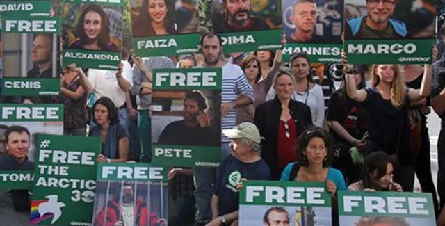 Российский Следственный комитет в октябре предъявил ряду арестованных, среди которых граждане стран Евросоюза, обвинения в пиратстве, грозящие тюремным заключением на срок до 15 лет. Около трех десятков активистов были задержаны российскими силовиками на борту голландского судна Arctic Sunrise, подплывшего к платформе в Печорском море, им грозит от 10 до 15 лет тюрьмы.