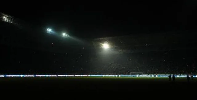 Напомним, что вчера матч прервали из-за отключения освящение трибун.