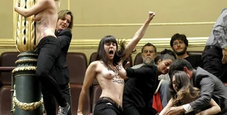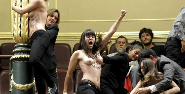 Сегодня, 9 октября, активистки международного женского движения Femen сорвали выступление министра юстиции Испании в здании парламента, где проходило обсуждение положения о запрете абортов.