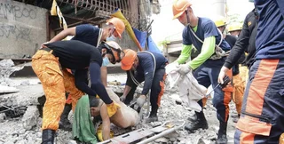 Филиппинцы разбирают завалы после землетрясения и выносят раненых. Ранее сообщалось о 20 погибших и более 60 раненых.