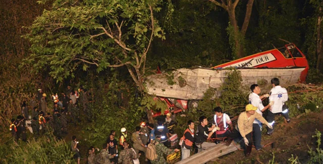 Более 20-ти человек погибли, 19 - тяжело ранены при падении туристического автобуса с буддийскими паломниками в пропасть в провинции Лампанг на севере Таиланда.