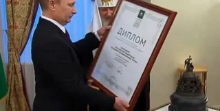 Диплом и знак премии главе государства вручил патриарх Московский и всея Руси Кирилл.