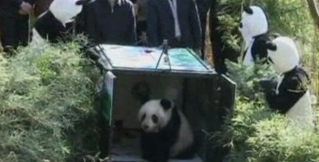На шее у панды закреплен GPS-ошейник, который позволит зоологам следить за ее перемещениями. Первые две недели она проведет в огороженной зоне, где у нее будет вдоволь воды и еды, а затем отправится в дикий лес.