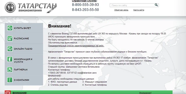 Как ранее сообщили в компании, к техническому состоянию самолета Boeing 737, потерпевшему крушение в воскресенье в Казани, претензий не было. В авиакомпании отметили, что самолет между рейсами проходил оперативное техобслуживание и неполадок вывялено не было. Предыдущие рейсы были выполнены в штатном режиме.