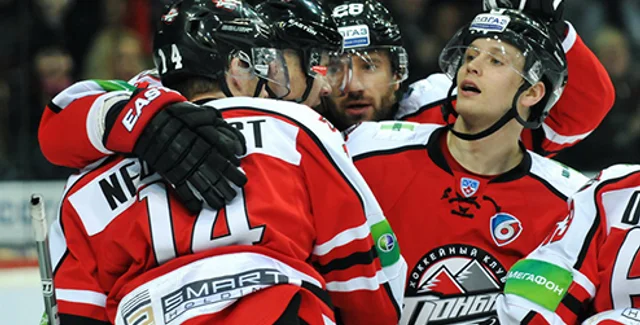 Донбасс: Лейтон; Коларж - Бартулис, Лайне - Федотенко - Виртанен; Уилсон - Подхрадски, Дадонов - Недорост - Якуценя; Сильницкий - Разин, Благой - Робитайл - Киискинен; Торяник - Белухин - Захаров; Квитченко.