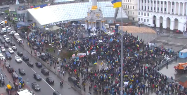 Милиционеры заблокировали участников митинга, встав в шеренгу вдоль Крещатика. Таким же образом они выстроились напротив Дома профсоюзов. На этом месте периодически возникают столкновения "беркутовцев" с митингующими.