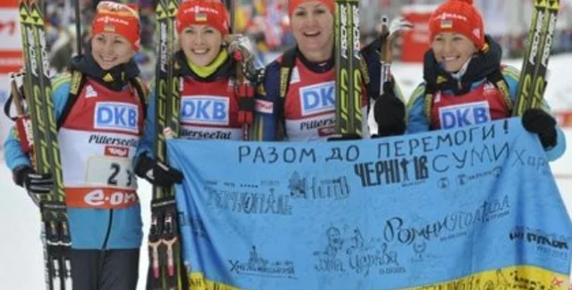 На этапе Кубка мира по биатлону в Хохфильцене (Австрия) украинские биатлонистки, получая "золото", кричали "За Майдан!". Группа поддержки выкрикивала "Молодцы!" и "Слава Украине!"