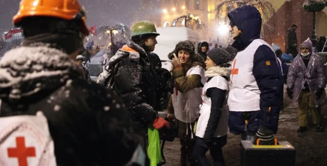 Час назад к Майдану независимости со всех сторон подошли бойцы "Беркута" и внутренние войска. Активисты Майдана массово выходят на улицу из палаток и Дома профсоюзов. У баррикады на Европейской площади зачитали постановление о запрете блокировать улицы.