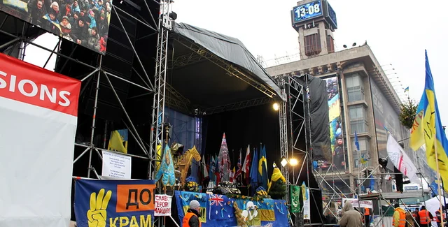 В ночь на понедельник, 23 декабря, к сцене Евромайдана в центре Киева подъехало два грузовика с конструкциями, передает Лига. Организаторы акции объявили о том, что сцену будут расширять.