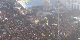 Около одной тысячи протестующих начинают выдвигаться от станции метро "Героев Днепра" в Киеве в сторону резиденции президента Украины Виктора Януковича "Межигорье"