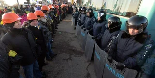 В частности, заявляют в ГАИ, "колонна автомайдановцев в 8 утра двигалась в направлении проспекта Героев Сталинграда. На перекрестке улиц Набережно-Рыбальской - Электриков работники ГАИ за нарушение п. 30.2 Правил дорожного движения пытались остановить автомобиль "Фольксваген Туарег", на государственном номерном знаке которого содержалась наклейка Евросоюза".