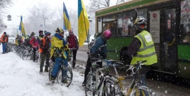 Велопробег в поддержку Евромайдана прошел в Харькове, несмотря на снегопад