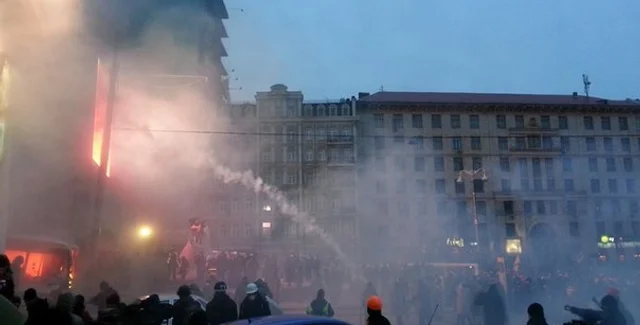 Протестующие по-прежнему пытаются прорваться через блок-пост. На месте конфликта взрываются дымовые шашки и свето-шумовые гранаты. На месте противостояния находятся несколько тысяч протестующих, передает Лига.