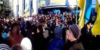 Жители Ровно после Народного вече отправились прямо по проезжей части в помещение Ровенской облгосадминистрации и захватили его