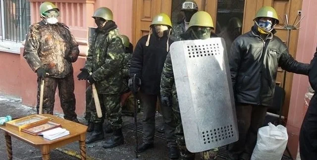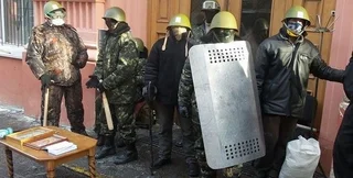 Как передает "Интерфакс-Украина", в захваченном накануне ночью здании у центрального входа выбиты окна, также выдернута защитная решетка, а окна с внутренней стороны забаррикадированы мебелью – шкафами и стульями.