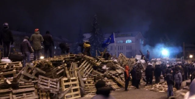 Ивано-Франковскую областную государственную администрацию очистили от баррикад, которые построили здесь после захвата 24 января 2014 года