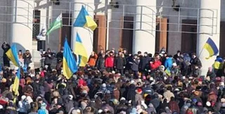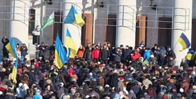 Во время проникновения демонстрантов в здание адмнинистрации там находись только несколько десятков сотрудников милиции, но они не противостояли активистам.