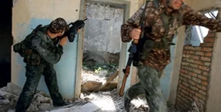 В один солнечный летний день грим, бутафорское оружие и сценический реквизит помогли редакции Фокуса изобразить войну в заброшенном доме на киевском Подоле