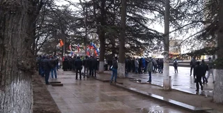 Под зданием Верховной Рады Крыма собрались пророссийские активисты, которые называют своим президентом Виктора Януковича