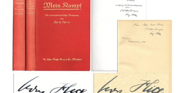 Выставленные на продажу копии Mein Kampf были напечатаны в 1926 и 1927 годах. Судя по надписи на развороте, Гитлер подарил их на Рождество Йозефу Бауэру, который входил в НСДАП и участвовал в "пивном путче" 1923 года. Что касается второго лота, то аукционный дом утверждал, что в этом пальто Шпеер последний раз встречался с Гитлером 23 апреля 1945 года.