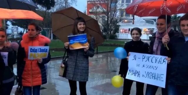 4 марта группа ялтинцев, несогласная с российским вторжением на территорию суверенного государства Украина, прошла мирным маршем по Набережной