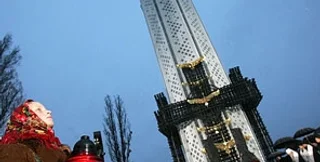 Первая очередь мемориала "Свеча памяти", представляющая собой тридцатиметровую колокольню, официально открыта 22 ноября, в день 75-й годовщины Голодомора.