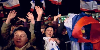"Уважаемые симферопольцы! 16 марта в 20.00 состоится закрытие фестиваля "Крымская весна". Будем рады видеть вас на площади Ленина" — приглашает объявление на дверях школы. Народное гулянье продлится до утра — толпы будут петь "День Победы" и пускать фейерверки.