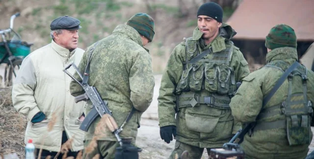 Неподалеку от границы с Крымским полуостровом в Херсонской области офицеров, прапорщиков, сержантов и солдат срочной службы встречали с почестями и военным оркестром.
