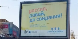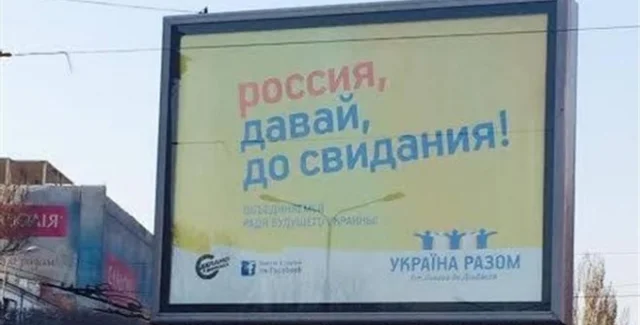 Центр Донецка на днях украсил билборд с призывом: "Россия, давай, до свидания!"