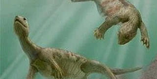 Во-вторых, до настоящего времени считалось, что черепахи эволюционировали из наземных рептилий (совсем недавно появлялась даже информации об обнаружении недостающего звена эволюции водоплавающих черепах). Отчасти это объяснялось тем, что самые древние (до новой находки) останки черепашьих предков возрастом примерно 205 миллиона лет имели сухопутное происхождение.