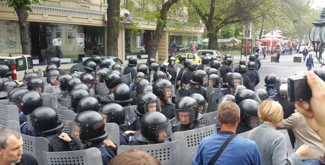 Пророссийские активисты пытаются прорваться в здание городского управления милиции. Как передает одесский сайт dumskaya.net, у здания выстроился кордон правоохранителей. Одного из них вытащили из строя и начали избивать.