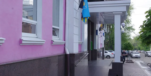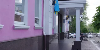 На здании Донецкого горуправления милиции находятся флаги Донецка и Донецкой области.