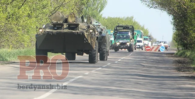 Сегодня в 9:30 со стороны Нововасильевки в Бердянск зашла колонна украинской военной техники. Колонна усилена тяжелой техникой.