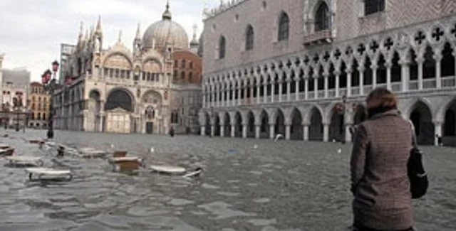 Наводнение началось началось 1 декабря, в вчера днем самая низкая часть города -площадь Святого Марка уже была покрыта 80-сантиметровым слоем воды. К вечеру ее уровень поднялся еще выше.