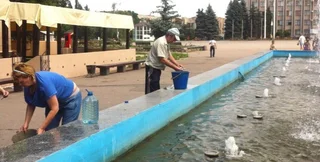 По сообщению лидера террористов Славянска Вячеслава Пономарева, в городе есть несколько артезианских скважин, откуда набирают воду и транспортируют ее жителям в микрорайоны. По сообщениям местных жителей, возле машин собираются большие очереди людей с ведрами и пластиковой тарой.