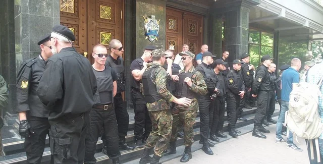 Как передает "Интерфакс", у центрального входа в здание собралось более 100 представителей "Правого сектора", одетых в камуфляжную одежду, маски. Они говорят, что Герасимюк, по их мнению, работая во времена Виктора Януковича, фальсифицировал уголовные дела в отношении участников мирных протестов.