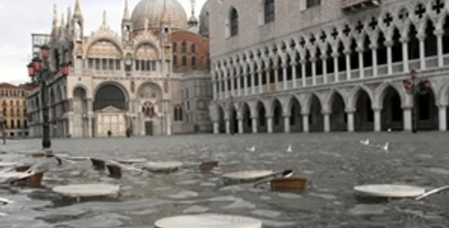 В Венеции произошло сильнейшее за последние двадцать два года наводнение. Из-за ливней уровень воды в городской лагуне поднялся более чем на полтора метра. Таким образом, затопленными оказались 95% исторических достопримечательностей Венеции, включая площадь Святого Марка — Сан-Марко (Piazza San Marco).