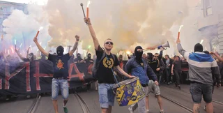 15 мая в Полтаве более двух тысяч ультрас "Ворсклы", "Динамо" и "Шахтера" прошли маршем перед финалом Кубка Украины.