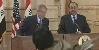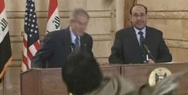бросил в Буша один за другим свои ботинкиСейчас арабские и иранские телеканалы в развлекательном тоне повторяют репортаж о том, как закидывают обувью Буша. Многие люди в регионе рассматривают этот инцидент как реакцию на политику, проводимую Бушем на Ближнем Востоке.