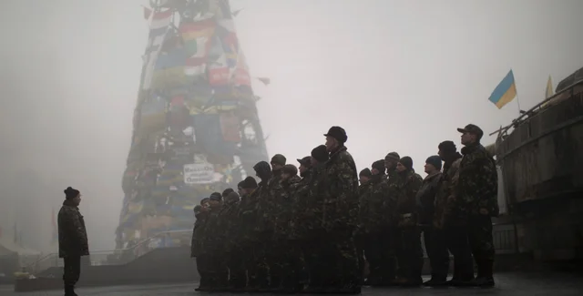 Бывшие самообороновцы, а ныне бойцы Нацгвардии, подчиненной МВД, оказались в одном окопе со своими вчерашними противниками — беркутовцами