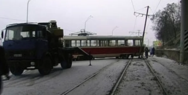В Киеве, недалеко от моста Метро трамвай с пассажирами, двигавшийся по маршруту № 5, сошел с рельс.